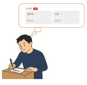 受け取りのサインが必要になる場合がありますので、偽名の場合は必ず覚えておきましょう。
